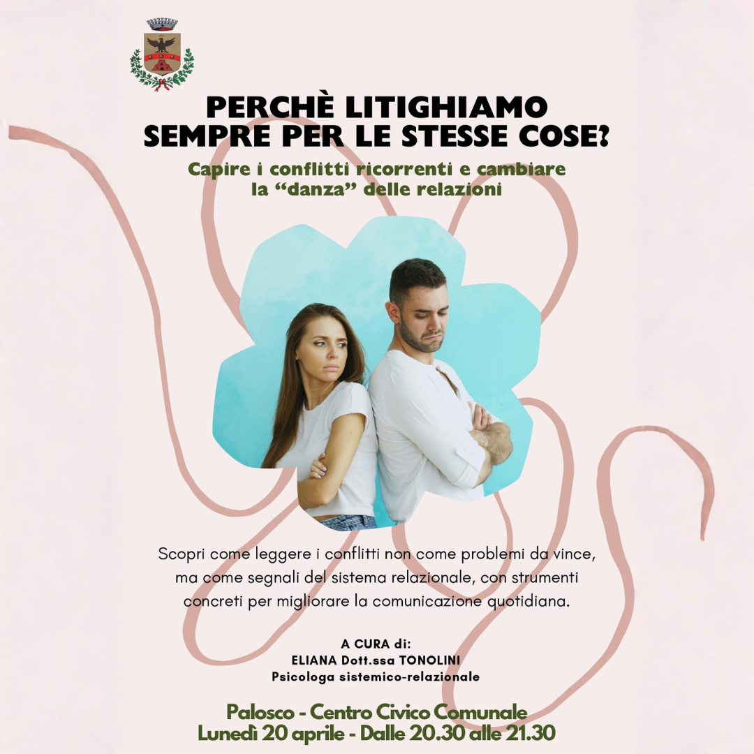 Quante volte ci troviamo a discutere sempre sugli stessi temi, con le stesse modalità e senza riuscire a trovare una vera soluzione? Questo incontro di psicologia divulgativa propone uno sguardo diverso sul conflitto, non più visto come qualcosa da evitare o vincere, ma come un segnale prezioso del funzionamento della relazione.